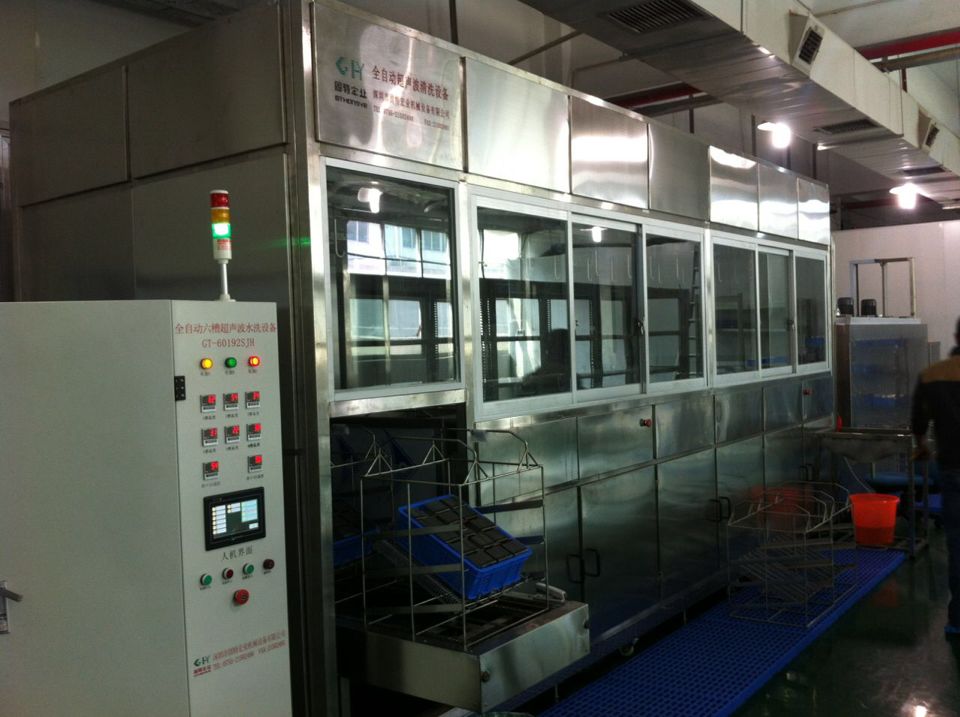 上料→超聲粗洗→超聲粗洗→超聲精洗→超聲精洗→超聲漂洗→熱風(fēng)干燥→下料